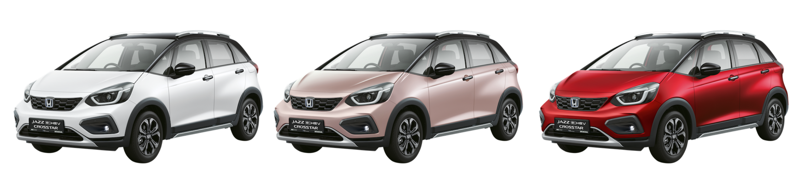 Honda kicks this proposition off by offering bold and stunning colours for the Jazz Crosstar e:HEV, Fjord Mist Blue being one of them. There are also three dual tones – Crystal Black with Premium Opal White Silver (pearl), Crystal Black with Rose Gold (metallic) and Crystal Black with Premium Crystal Red (metallic).