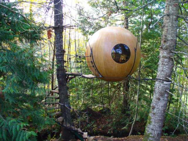 For those who’ve always dreamed of living among the treetops, the Free Spirit Spheres on Vancouver Island, Canada, offer a whimsical solution. These spherical accommodations are suspended 3.2 to 4.3 metres above ground, hanging gracefully between the trunks of towering rainforest trees.