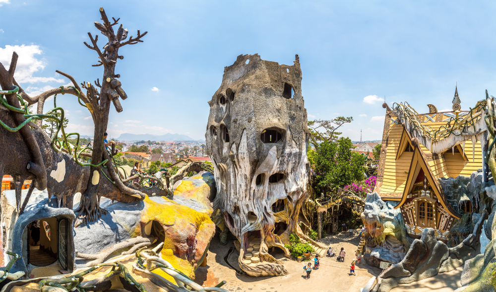 Visitors can explore the lush “Spider Web Garden,” enjoy coffee in nature, or stay overnight in one of 11 themed rooms, including the Bamboo Room (Vietnam) and Bear Room (Russia). Free from modern distractions like TVs, each room is designed to foster a deeper connection with nature — making Crazy House as thought-provoking as it is visually striking.