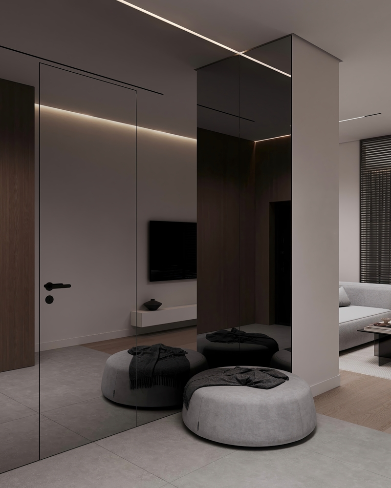 A well-positioned mirror (for example, opposite a window) can not only ‘extend’ a room in its reflection, but also brighten the space with reflected light, thus making it feel airier. You can choose to mirror an external view or a blank wall, but avoid mirroring a cluttered area as it emphasises the mess.