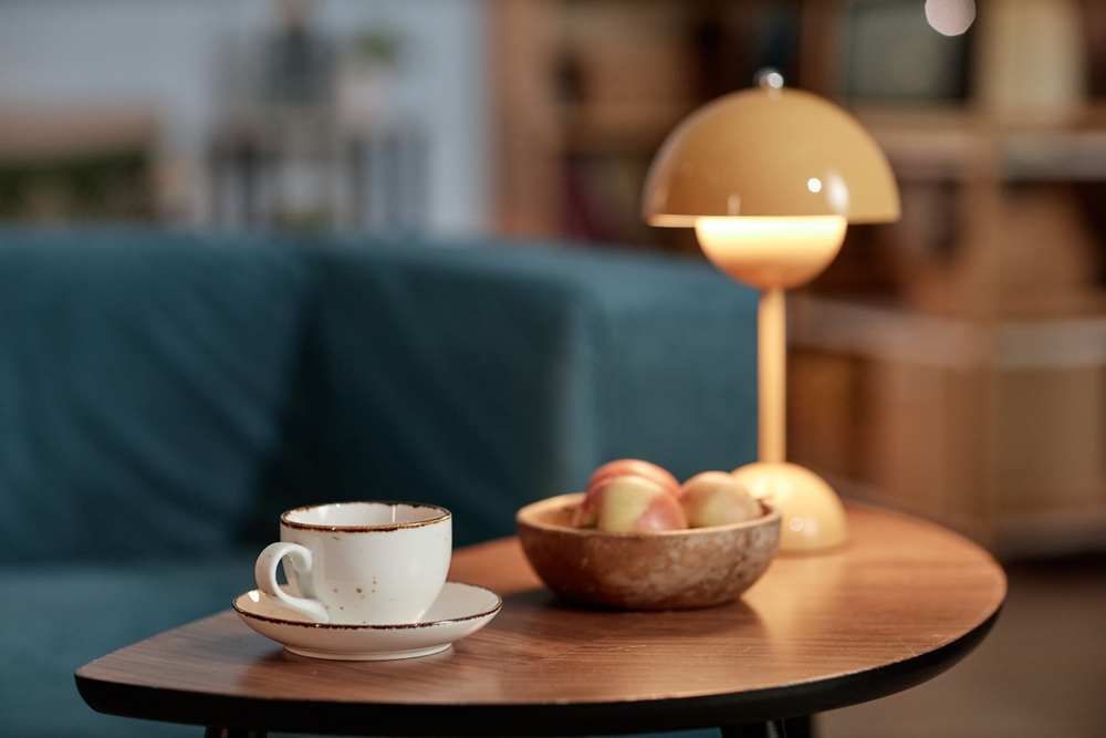 Ditch the floor-length lamps — they take up space. Instead, install space-saving wall sconces and under-cabinet lights. And avoid having only one central ceiling light.