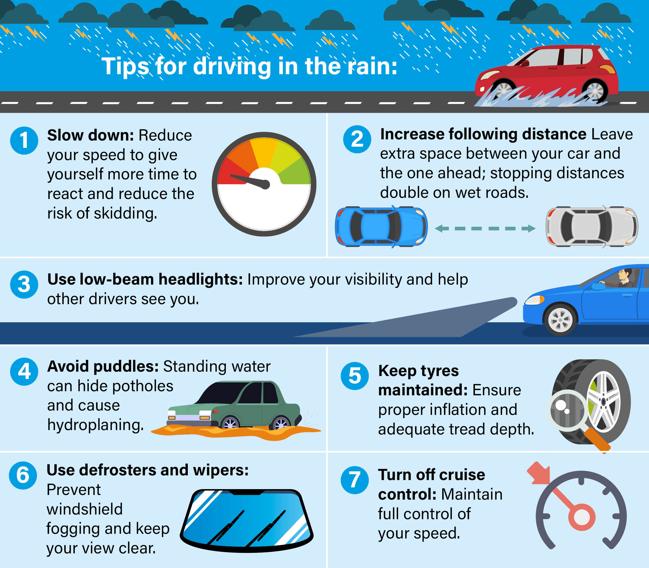 - Stay alert: Bad weather demands your full attention; avoid distractions.