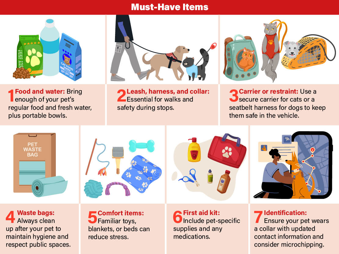 Packing for your pet is just as important as packing for yourself. A well-prepared travel kit can help your pet stay comfortable and healthy on the road.