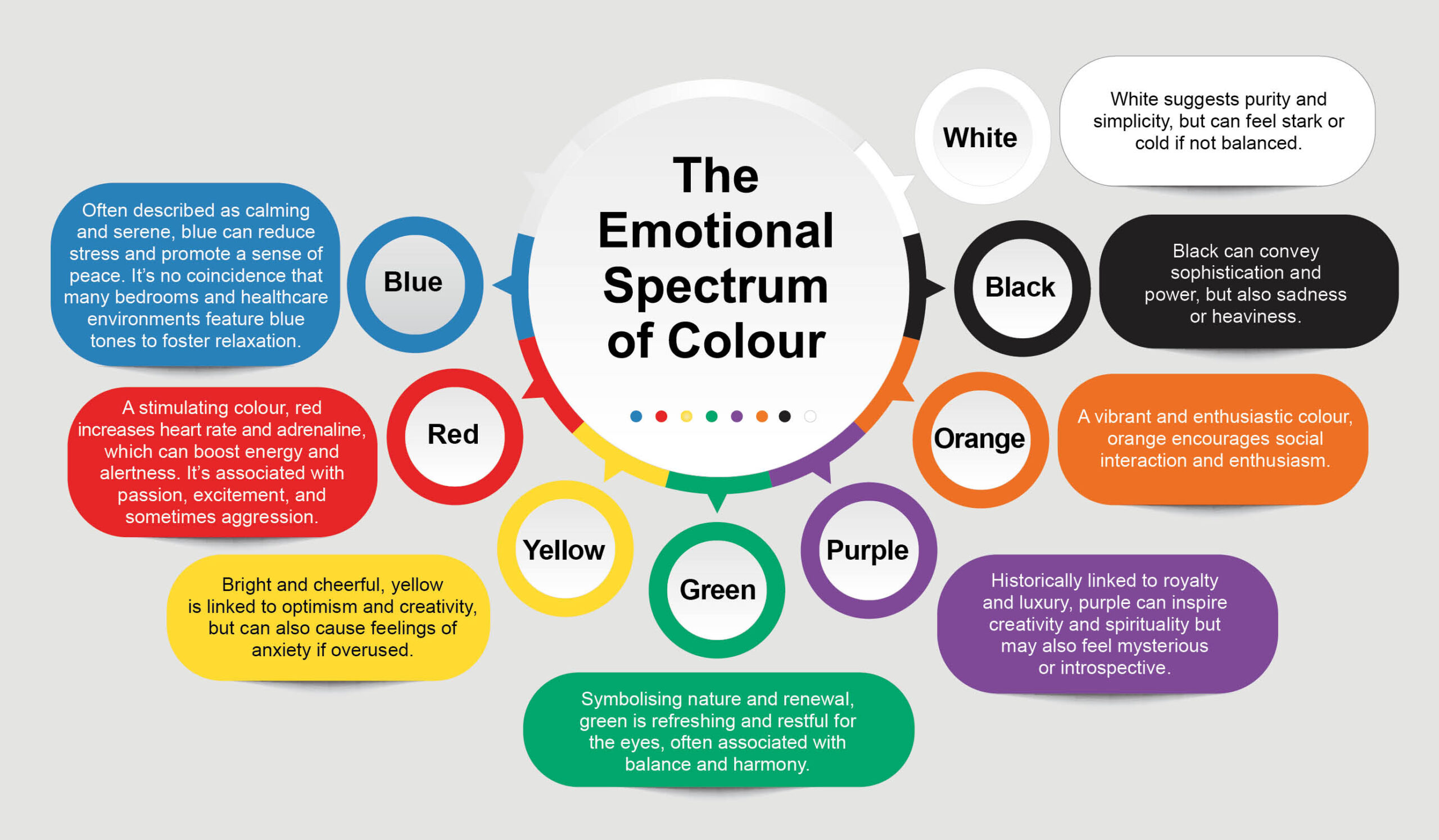 Moreover, colour influences cognitive performance. Studies have found that red can improve attention to detail, making it useful for tasks requiring focus, while blue encourages creativity and problem-solving.